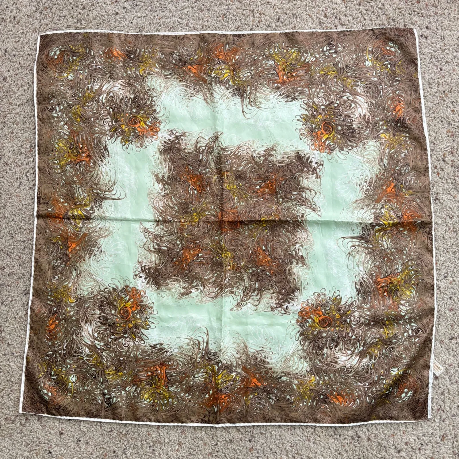VTG Hand Printed Square Scarf Made in Japan Abstract Marbled Swirl Brown Mint Green Keywords: polye... Show more