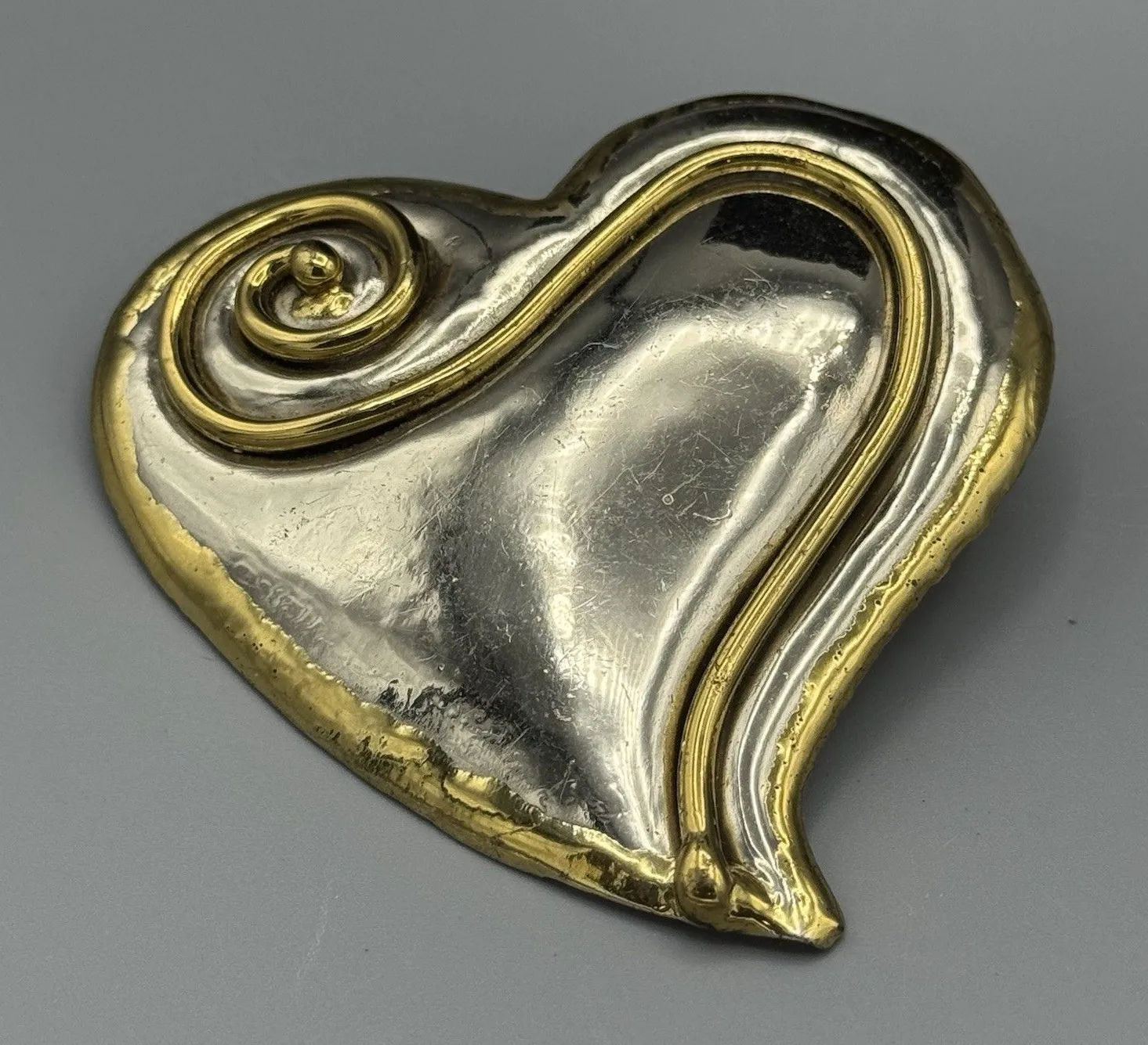 Color: silver, gold Features: 3D, brooch/pendant, mexico Approx. Measurements: Length: 2 3/4 in (6.99 cm) Width: 2 3/4 in (6.99 cm) In good vintage preowned condition Gently used/displayed but not abused Slight ware, scruff marks, sticker residue and patina on the back from use and storage. will let new owner clean (see photos) No chips, cracks, or repairs