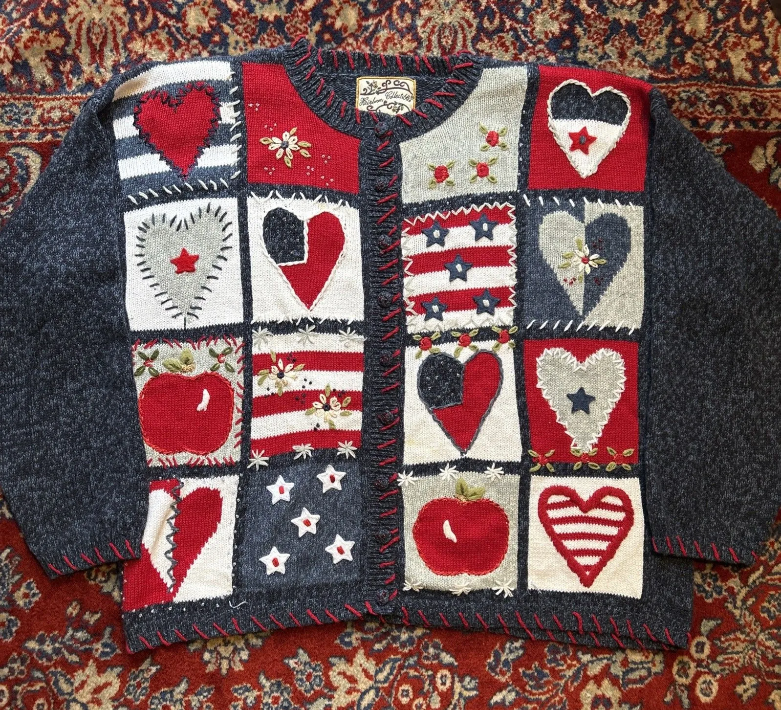 VTG Heirloom Collectibles Women Red White Blue Applique Embroidered Cardigan L Size L - $25 - From thriftay