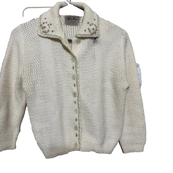 Vtg HELEN HARPER sweater luxura orlon MCM short sleeve beaded ivory 1960s M Size M - $20 - From Lisa