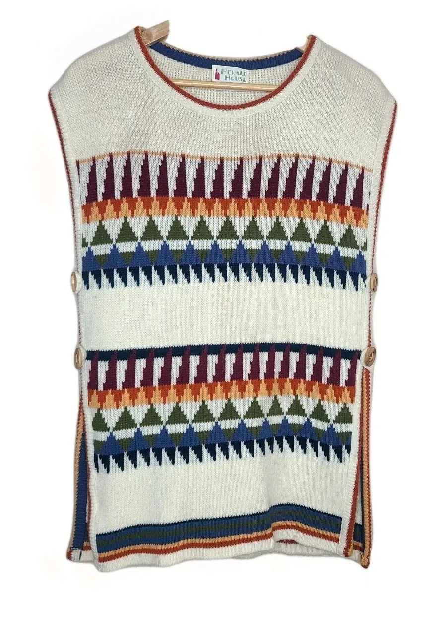 Vtg Herald House Tunic Vest 60s-70s Knit Long Line Top Wooden Side Buttons S/M Excellent vintage condition. Please review all pics for condition Sides are open with 2 button closures on each side. No size tag. Please review measurements for fit. I would say it fits like a S/M Approx Measurements: 17in pit to pit, 28in length Questions? Please ask!