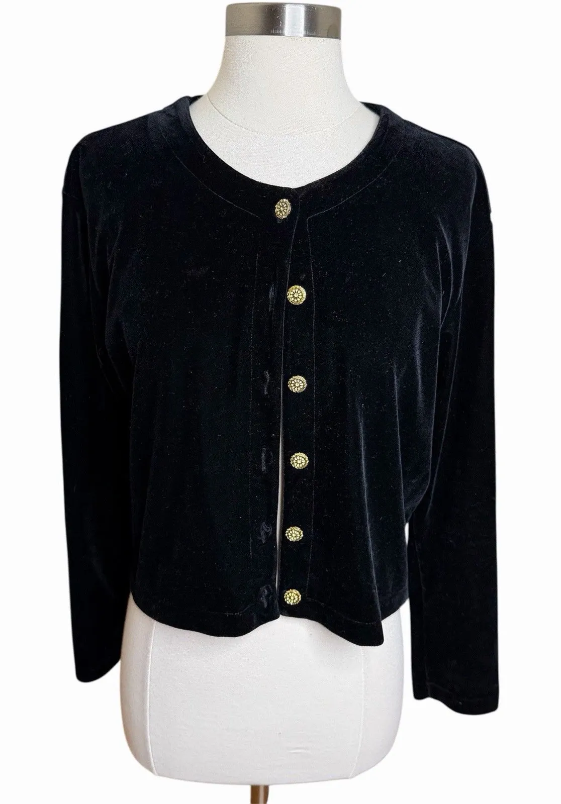 Vtg Hillard & Hanson Black Velvet Cardigan Gold Buttons Womens 10 Classic Prep - $25 - From Laura