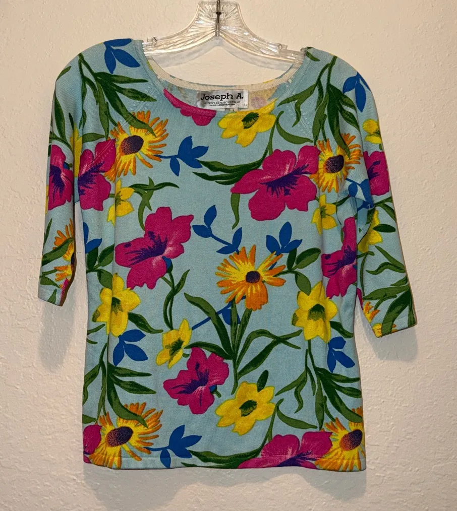Vtg Joseph A Silk Blend Floral Top Paris London New York Large Groovy Mod - $25 - From Rebekah
