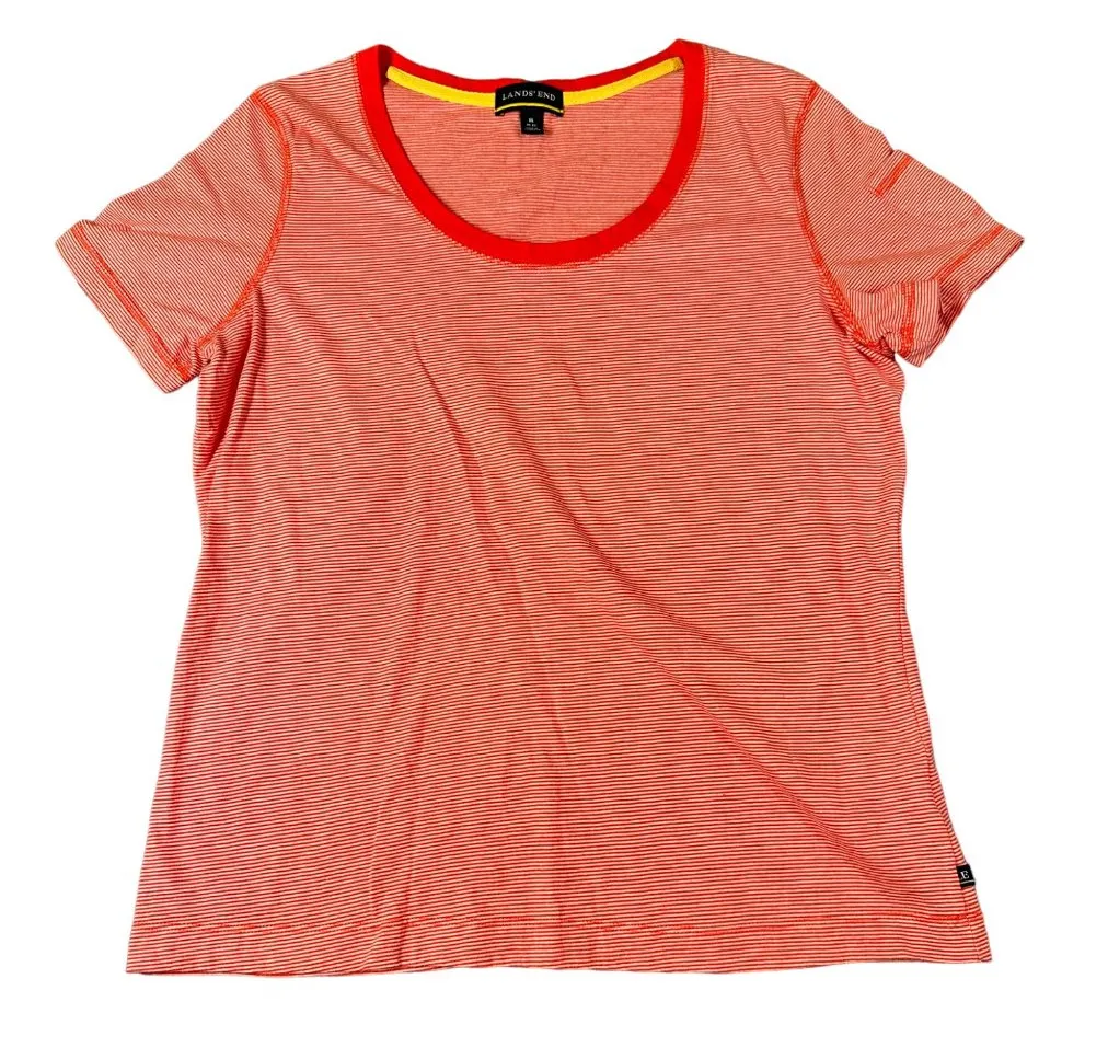 Vtg Lands' End Women's M 10-12 Red Striped Scoop Neck Short Sleeve Tee T-shirt. 60% Cotton, 40% Pol... Show more
