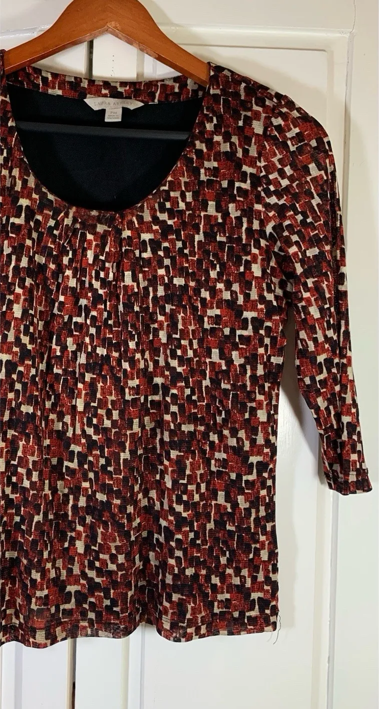 Vtg Laura Ashley Shirt Womens‎ Medium Petite MP Geometric Stretch Comfort Preppy Size undefined - $16 - From Julie