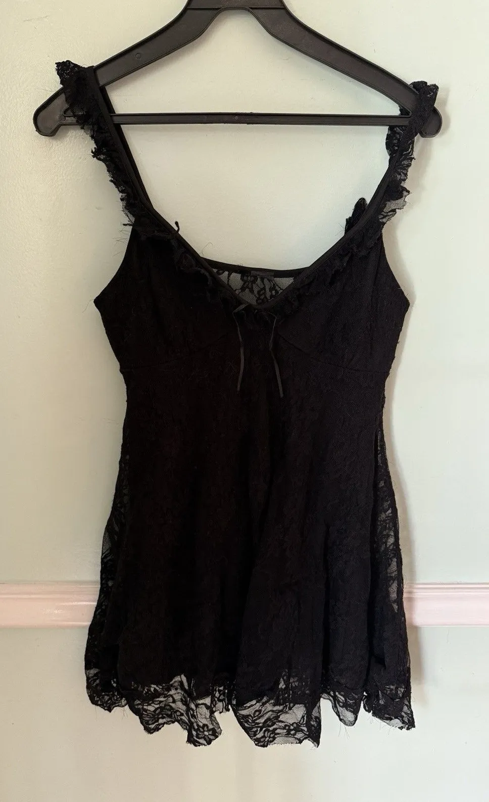 Vtg Layered Lace Tank Top Size M Black Lace Babydoll USA Y2K Grunge Coquette Size M - $19 - From NiCole