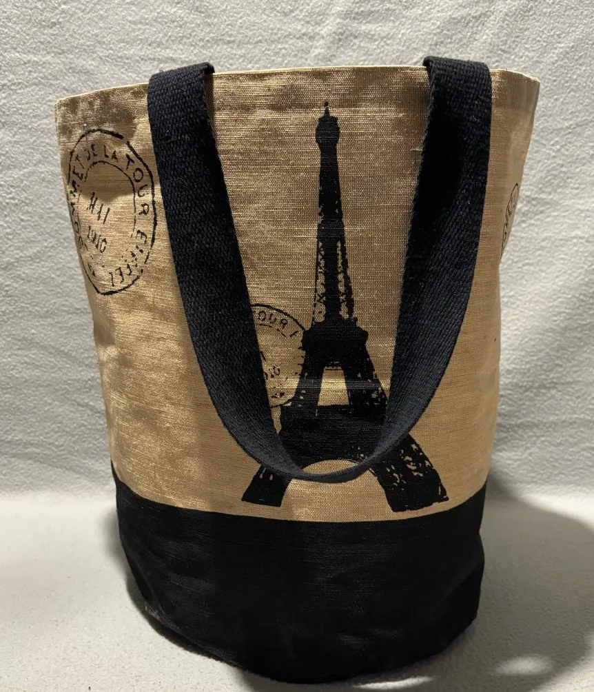 Vtg. MAI 1910 Sommet de la Tour Eiffel Tower Paris Canvas Fiber Tote Bag round Tan - $29 - From Aron