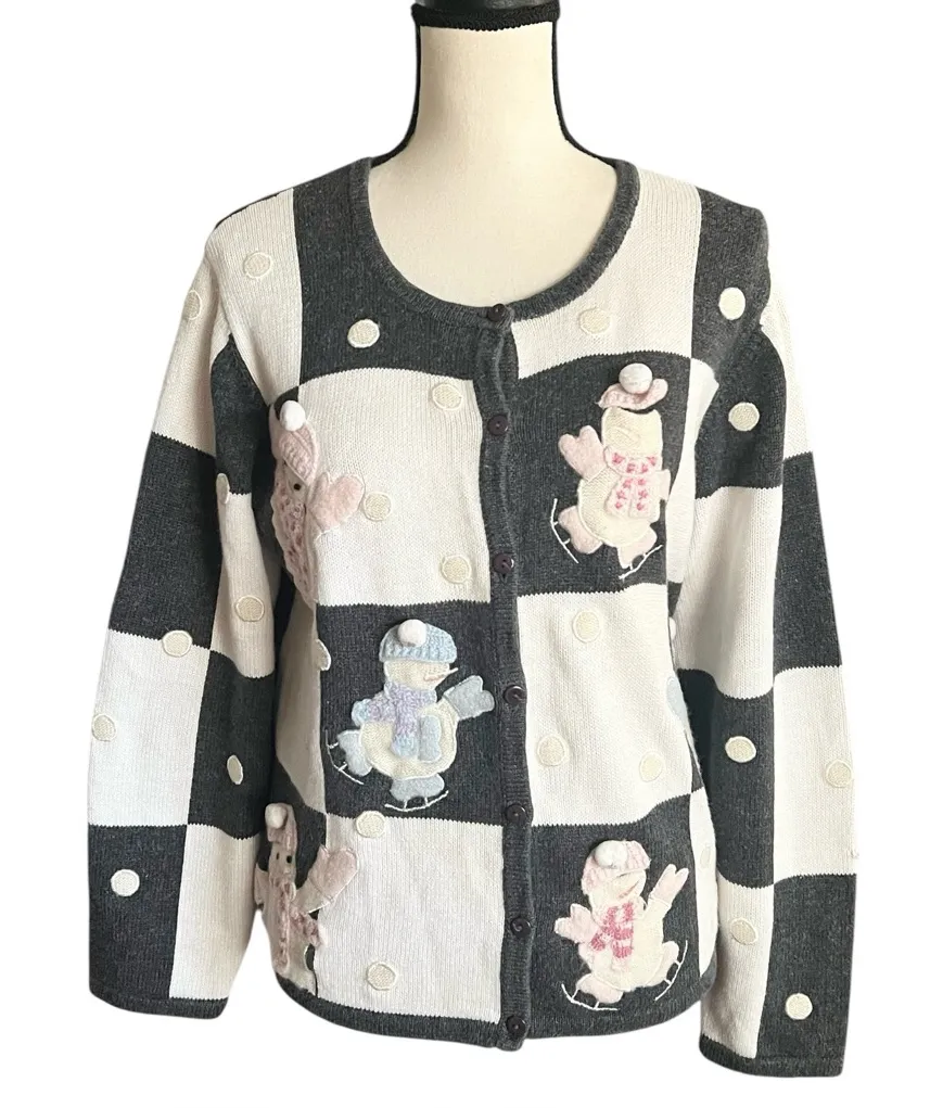 VTG. classics Marisa Christina 3 D Winter Snowman Sweater Cardigan. SZ. M. Button front. Ramie and C... Show more
