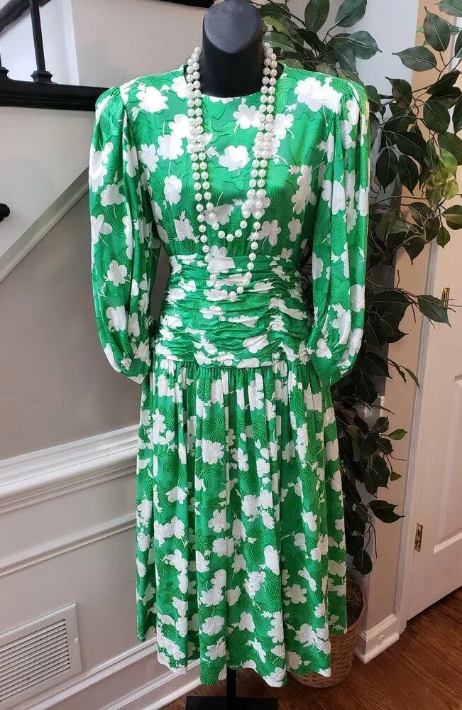 Vintage Long Maxi Dress Women's Small Green Floral Lined Crew Neck Long Sleeve Back Zip Product Detail Size: Small Color: Green Material: Polyester Type: Long Maxi Dress Department: Women's Neck Style: Crew Neck Sleeve Length: Long Sleeve