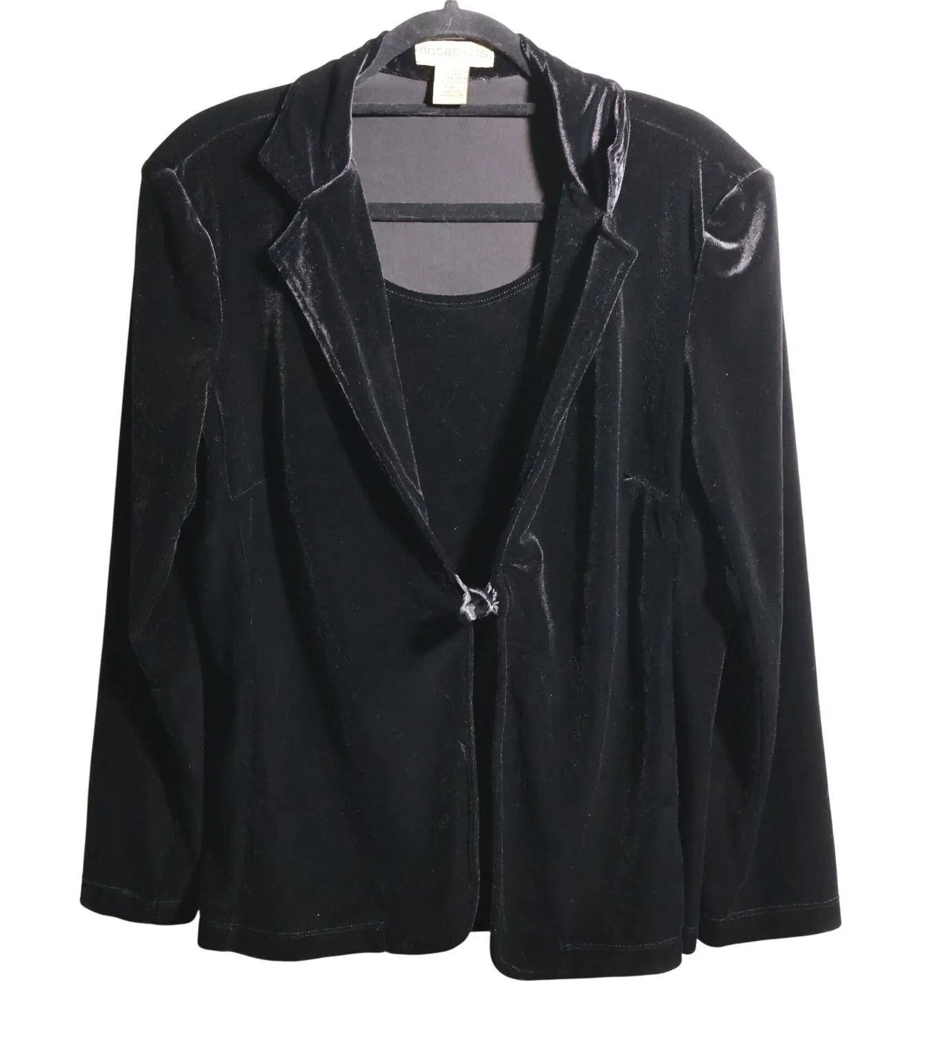 Keywords: velvet blazer, petite fashion, evening wear, special occasion, sophisticated, elegant, layered look, womens suit jacket, soft fabric, fall fashion, winter wear, business casual, party outfit vintage formal retro 90s velour whimsigoth basic dark romantic professional Please see photos for details. Offers welcome!