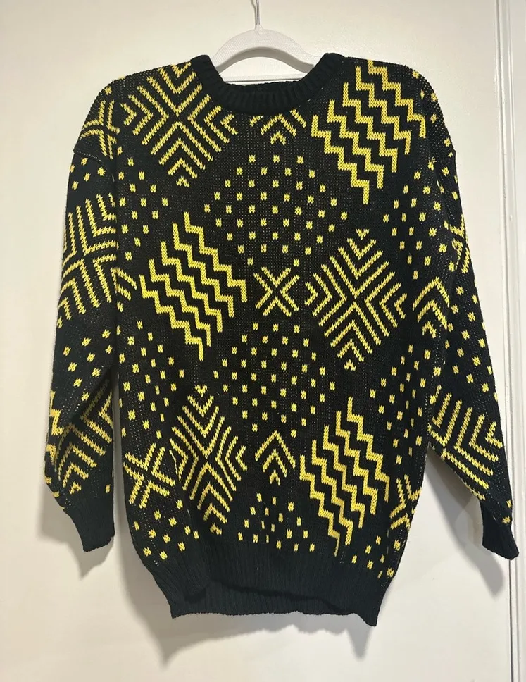 Vintage NWT 90s Women’s Sz:M C’est La Vie Black & Yellow Geometric Pullover Sweater. Classic rubbed... Show more