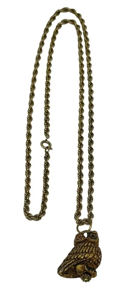 Charming vintage gold-tone owl pendant necklace with rope chain. Perfect for retro jewelry lovers or... Show more