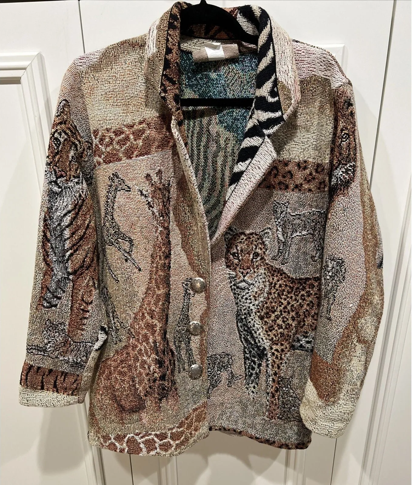 Vtg Painted Pony Tapestry Jacket Safari Giraffe Leopard Zebra Artsy Zoo Funky - $69 - From Jennifer