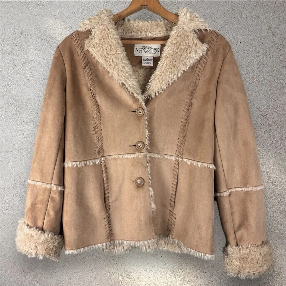 Vtg Penny Lane Coat‎ Jacket Faux Suede Shaggy Fur Trim Beige Boho Y2K 70s Sz L Tan Size L - $90 - From Patchworked