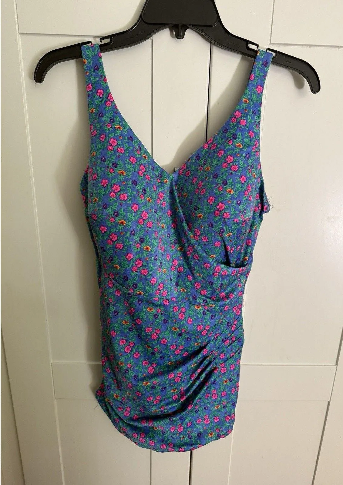 Vtg Perfection Fit by Roxanne Floral Swimsuit Size 18 40D Cup Blue Skirt Beach - $30 - From NiCole