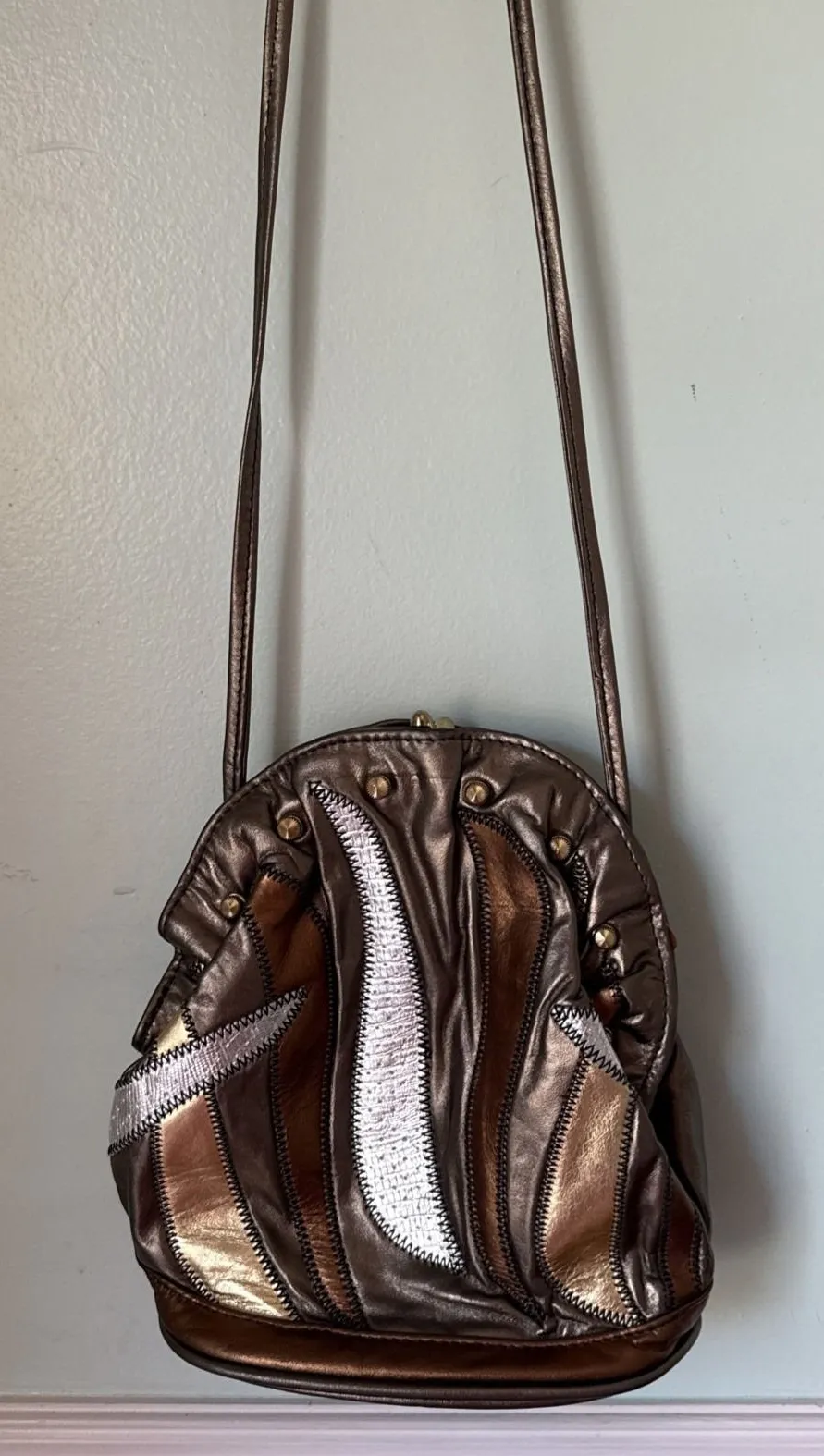 Vtg Reem Leather Metallic Patchwork Purse Satchel Handbag 1980's Retro Turnkiss - $46 - From NiCole
