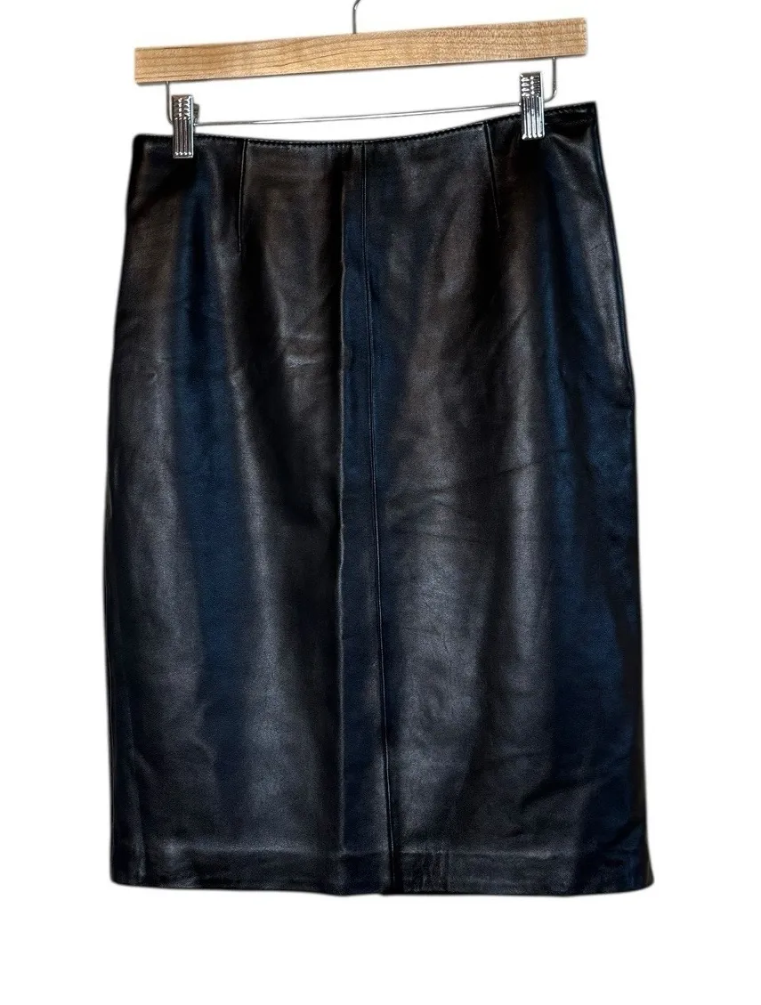 Excellent Pre-Owned Condition (see pics for details) Leather is buttery soft! Features: •Style Profile: Vtg Siena Studio Black Leather Pencil Skirt Sz 8 Knee Length Lined Baddie Siren •Flaws: No holes, stains, or tears •Please see photos for measurements (in inches) laying flat- Waist: 15.5" Hips: 19" Slit: 9" Waist to hem: 23.5" •Washing Instructions: Dry Clean Size: 8 Color: Black Tags: Leather, Baddie, Sexy, Office, Siren, Date Night, Punk, Rock, Rocker Smoke free home. I am happy to answer your questions and am open to reasonable offers! Super fast shipping: I ship out the next business day! Please note that all pre-owned items may have slight imperfections.