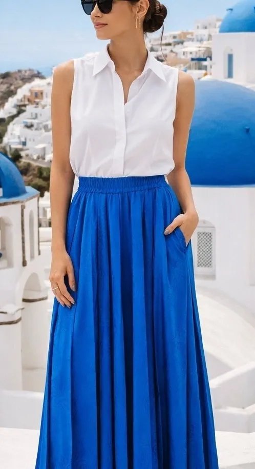 Elevated, fluid, and effortlessly luxe — this Papell Too cobalt blue silk pleated midi skirt is a standout statement piece. Crafted from 100% silk with a subtle paisley jacquard weave, it catches the light beautifully while maintaining a refined, timeless feel. Measurements (approx) flat lay: Waist Width: 13.0 in. Hip Width: 17.0 in. Skirt Length: 32.0 in. Skirt is unlined and elastic waist pull on Keywords: silk skirt, pleated skirt, paisley print, midi skirt, royal blue, elastic waist, designer skirt, luxury fabric, elegant, sophisticated, womenswear, evening wear, daywear