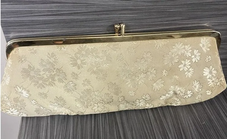This vintage St. Thomas clutch purse is a stylish accessory from the 1950s/60s, featuring a cream and gold color scheme with a floral pattern. Made from fabric, this elegant evening purse is designed for women and originates from Belgium. The compact clutch style makes it perfect for pairing with eveningwear, adding a touch of sophistication to any outfit.
