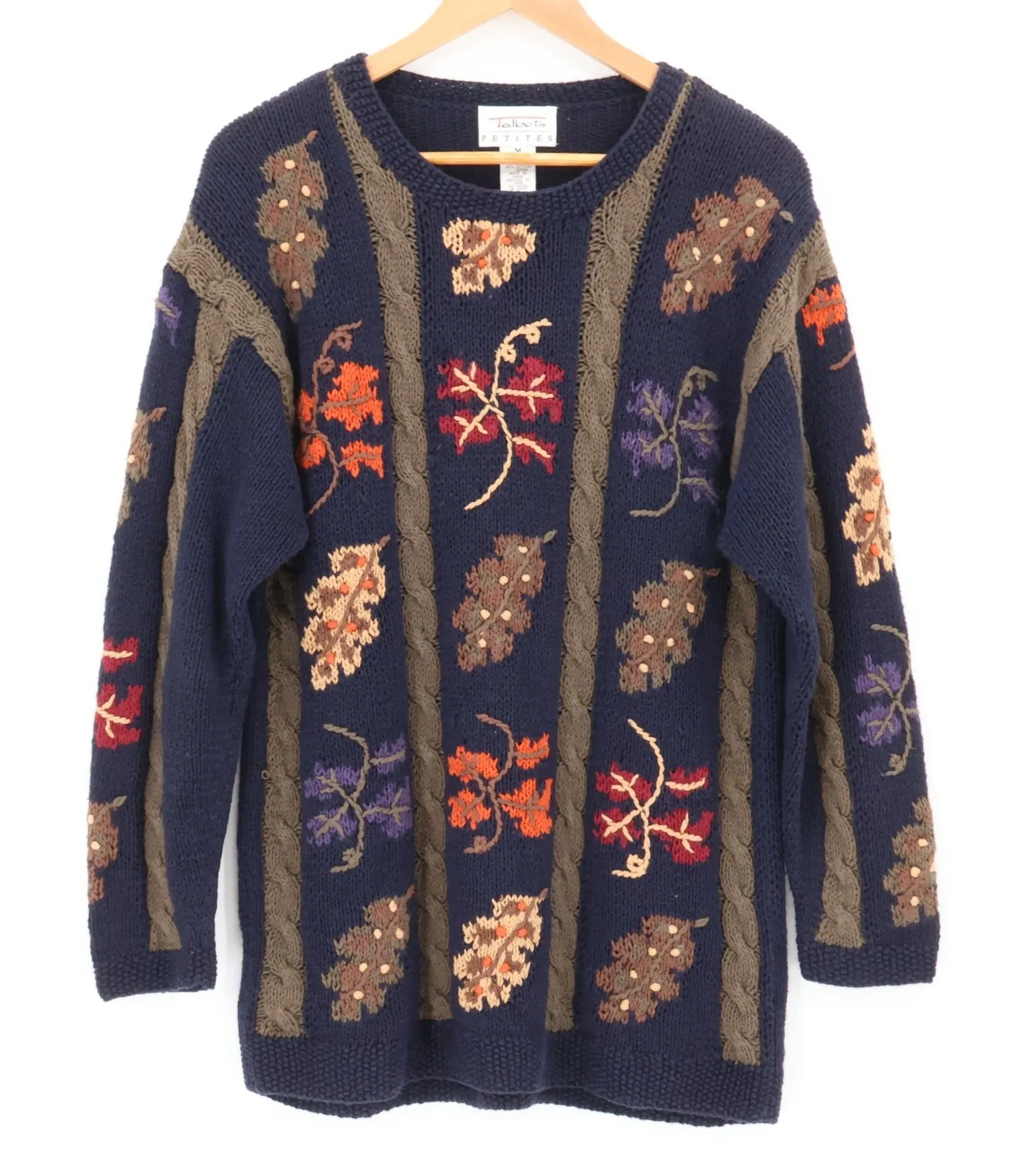 Vintage Talbots Petites cozy sweater featuring an autumn leaves pattern with cable-style panels and... Show more