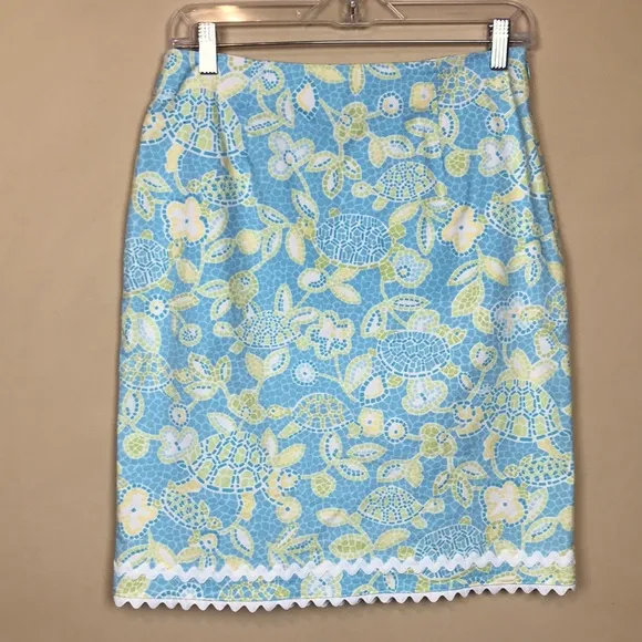 Excellent condition. 97% Cotton; 3% Spandex. Various shades of blue, green, yellow, and white. Hi... Show more