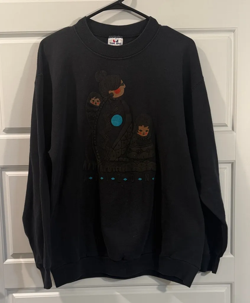 VTG Tee Jays USA Made Arizona Native American Embossed Sweatshirt Black large - $47 - From Tracy