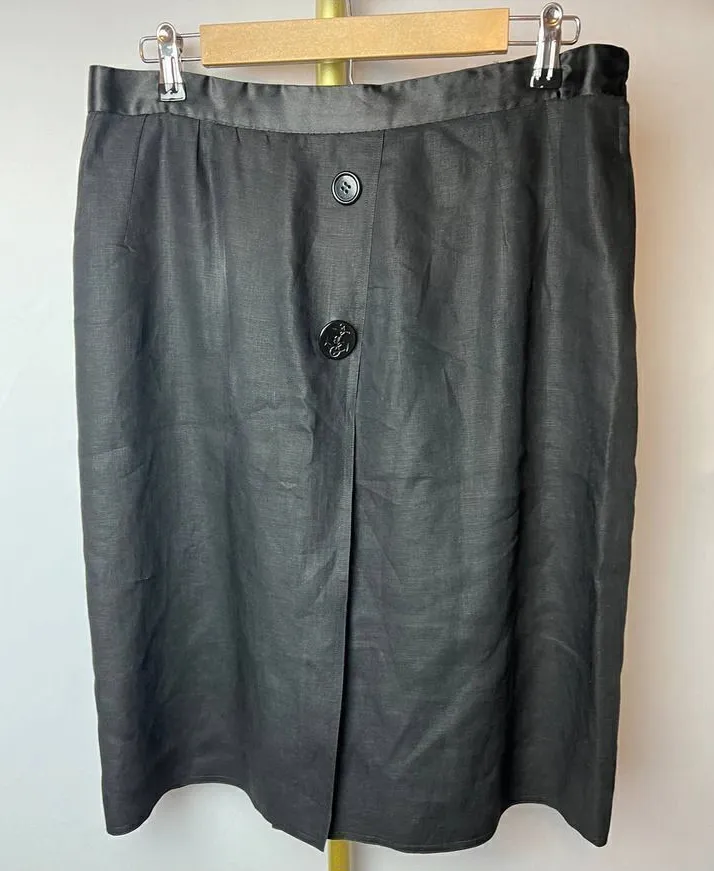 VTG Valentino Miss V Black Linen Skirt with Satin Waist Sz. 46 (US 16) Measurements Taken: 25"L,16.5... Show more