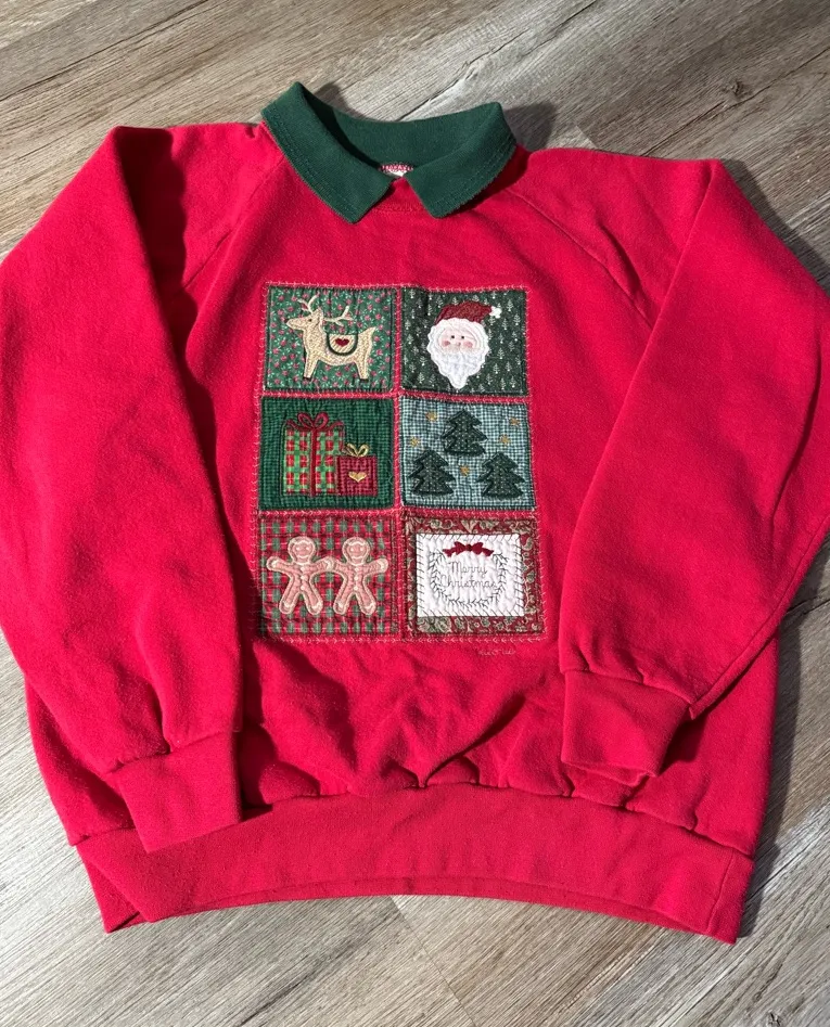 VTG Valorie Folk Art Christmas Sweatshirt Embroidered Gingerbread Red Green S M Size M - $55 - From Bri