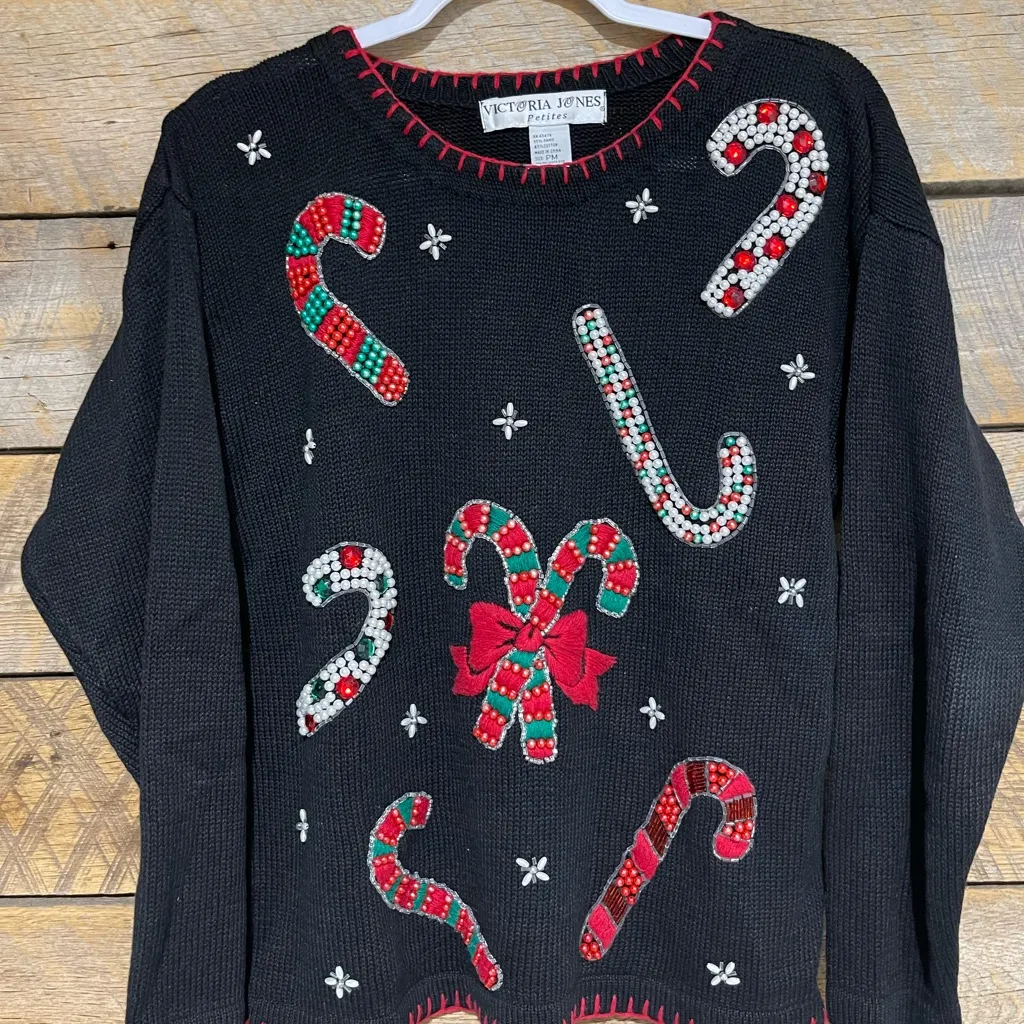 Vintage Victoria Jones Christmas Sweater Womens Petite Medium. Candy Canes, Beaded Holiday. Item is... Show more
