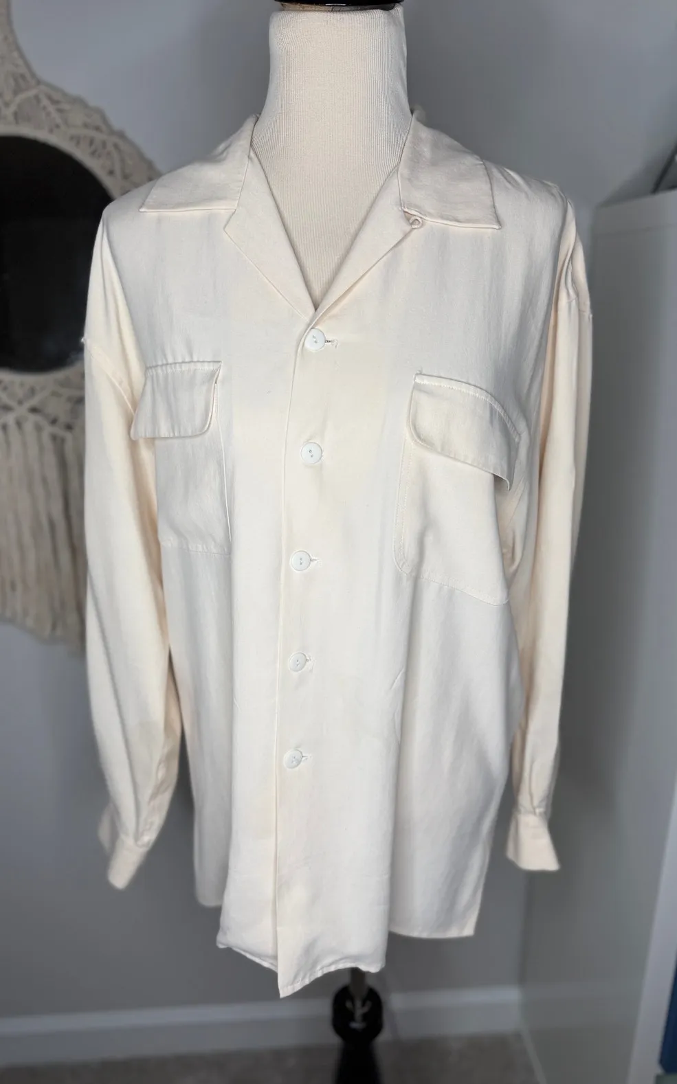Women's Vtg Vintage 90s Ann Taylor 100% Silk Cream Neutral Button-Up Shirt Top Blouse M Size: Mediu... Show more