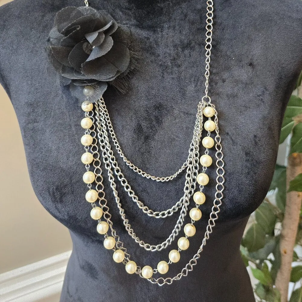 VTG Womens Ivory Pearl Silver Tone Chain Collar Flower Necklace w/ Lobster Clasp - $28 - From Carissa