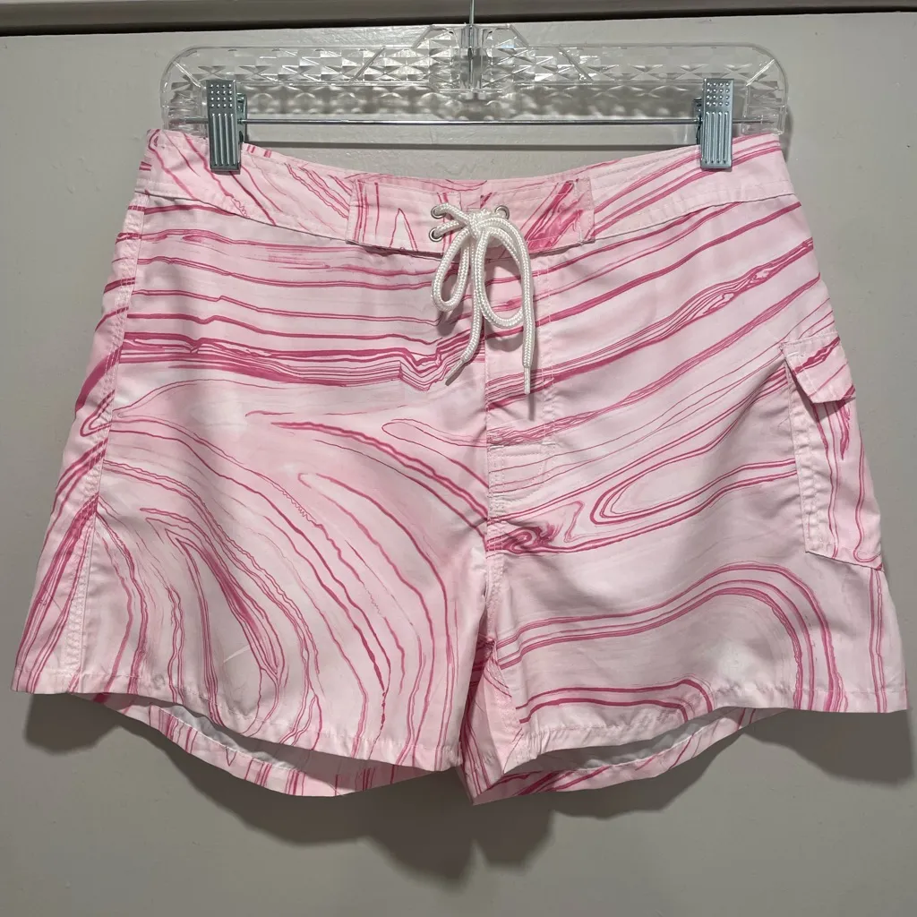 Vintage 2000s Y2K 1990s OP Sport Pink & White Tie-Dye Marbled Swirl Pattern Board Shorts Swim Trunks... Show more