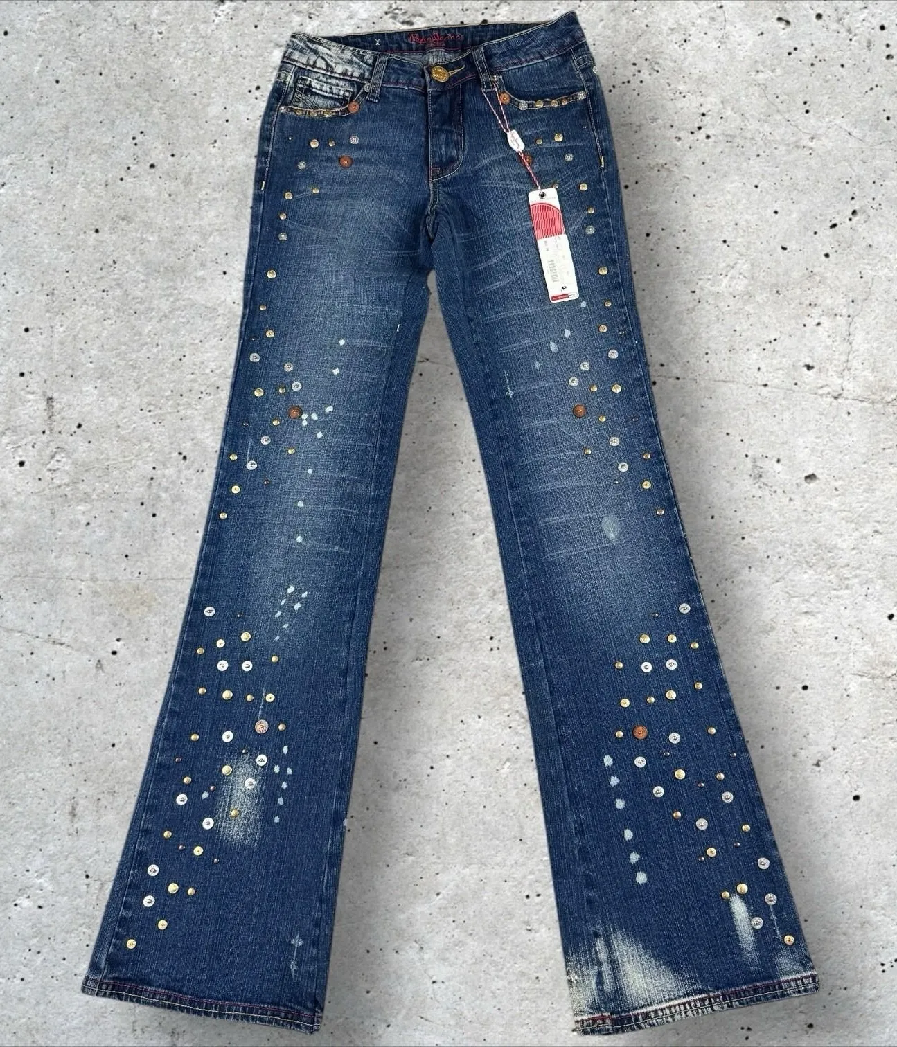 Vtg Y2K Deadstock Pepe Jeans Low Rise Flare Riveted Grommet Buckle Back‎ Sz 24 Blue - $111 New With Tags - From Patchworked