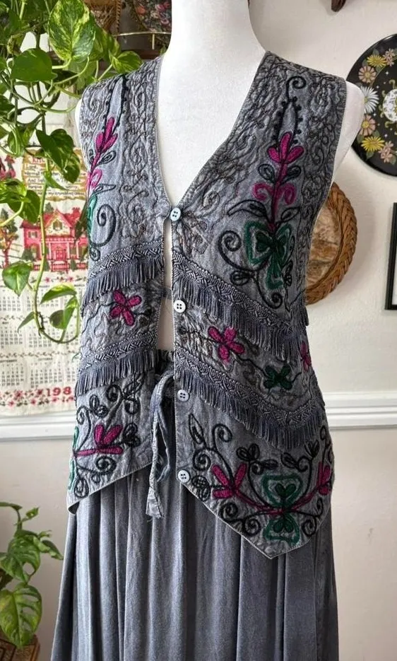 Vintage Y2K Just Cruising Vest/Broomstick Skirt Combo Embroidery Boho Vibes Earthy Skirt is adjusta... Show more