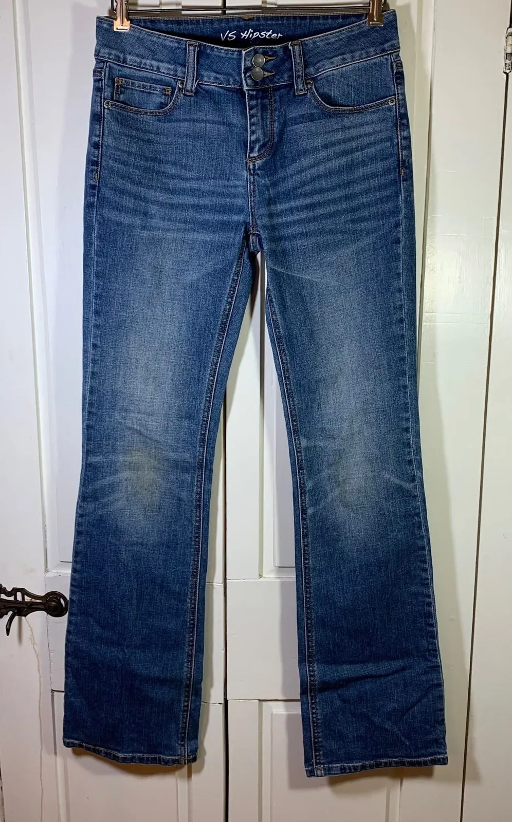 Please note some staining on knees. London Jean Co VS Hipster bootcut jeans in a classic blue denim... Show more