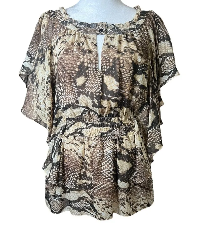 M Marc Bouwer chiffon ruffled tiered pullover blouse snakeskin print Women’s size small Excellent u... Show more