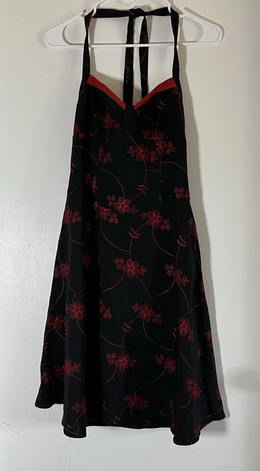 VTG Y2K Rampage Halter Dress Black Red Foral Embroidered Sweetheart Neck Sz 7 - $25 - From Z