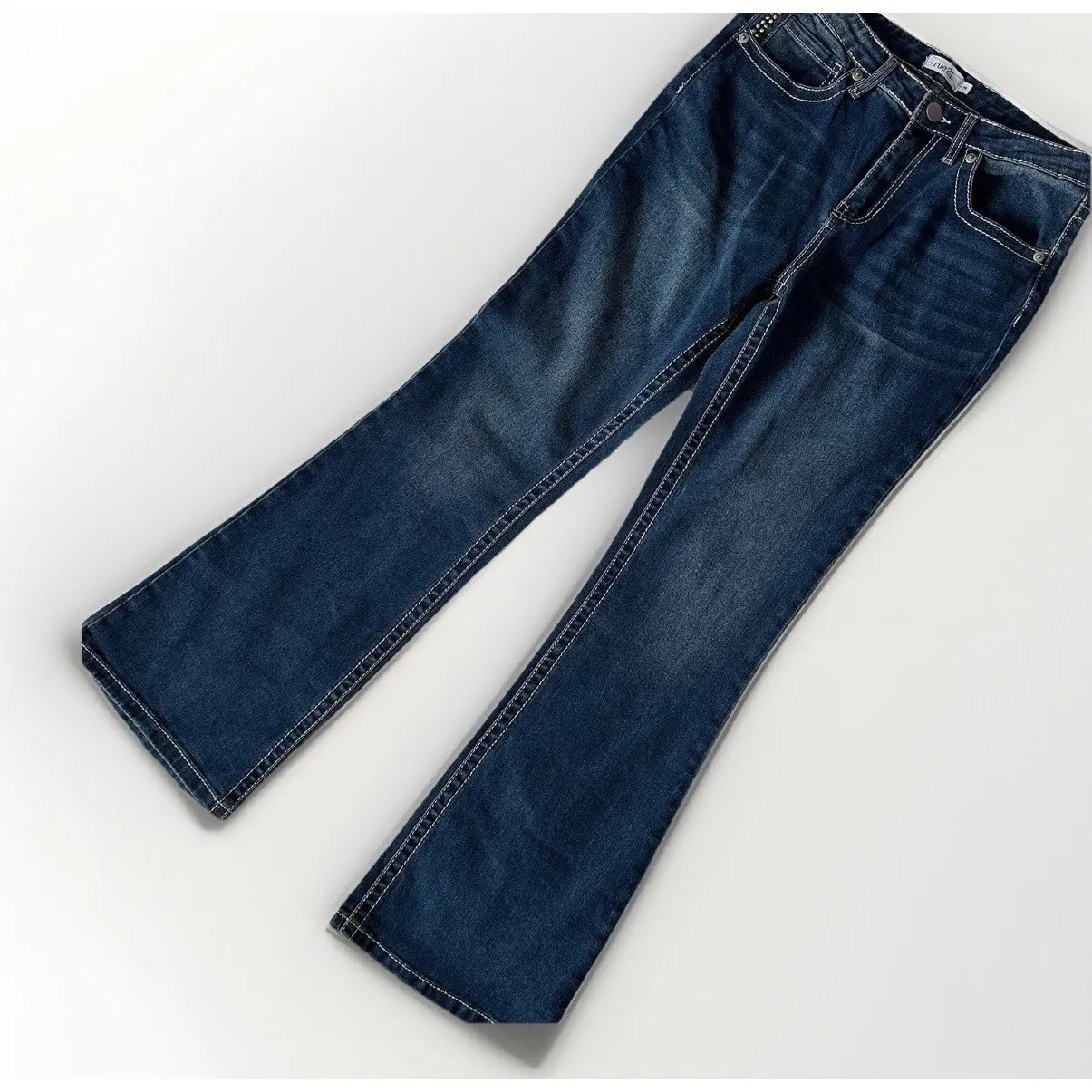 Waist 32 Inseam 32 Size 14 Rise 11 The product is a pair of women's VTG Y2K Rue 21 Jeans in size 14 with a bootcut style. These retro jeans feature embroidered sparkly butterfly accents, a high rise, and a 5-pocket design. Made of denim fabric with a medium wash, the jeans are machine washable and have a zip and button closure. The jeans are designed with a slimming fit, stretch for comfort, and are suitable for all seasons. Perfect for those who love a blend of hipster, grunge, and classic retro styles.