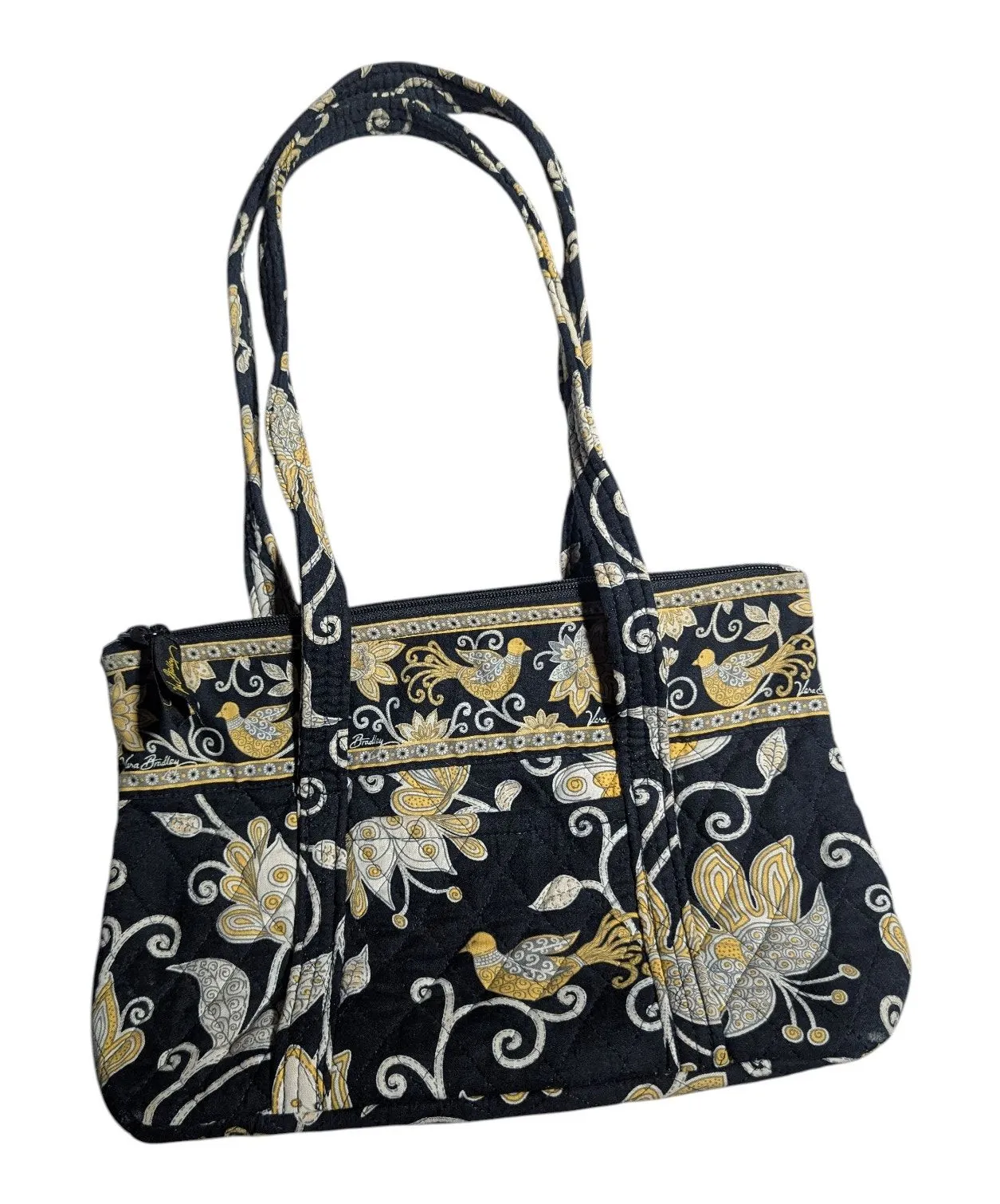 Black and yellow bold floral print quilted 100% cotton shoulder bag, from Vera Bradley. Vintage circ... Show more