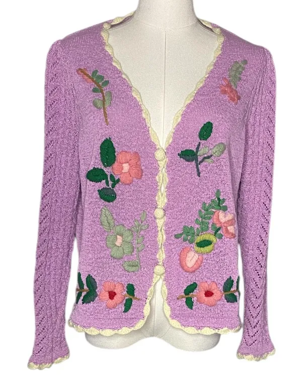 Beautiful Lavender Floral Embroidered Cardigan Elevate your wardrobe with this stunning, vintage-ins... Show more