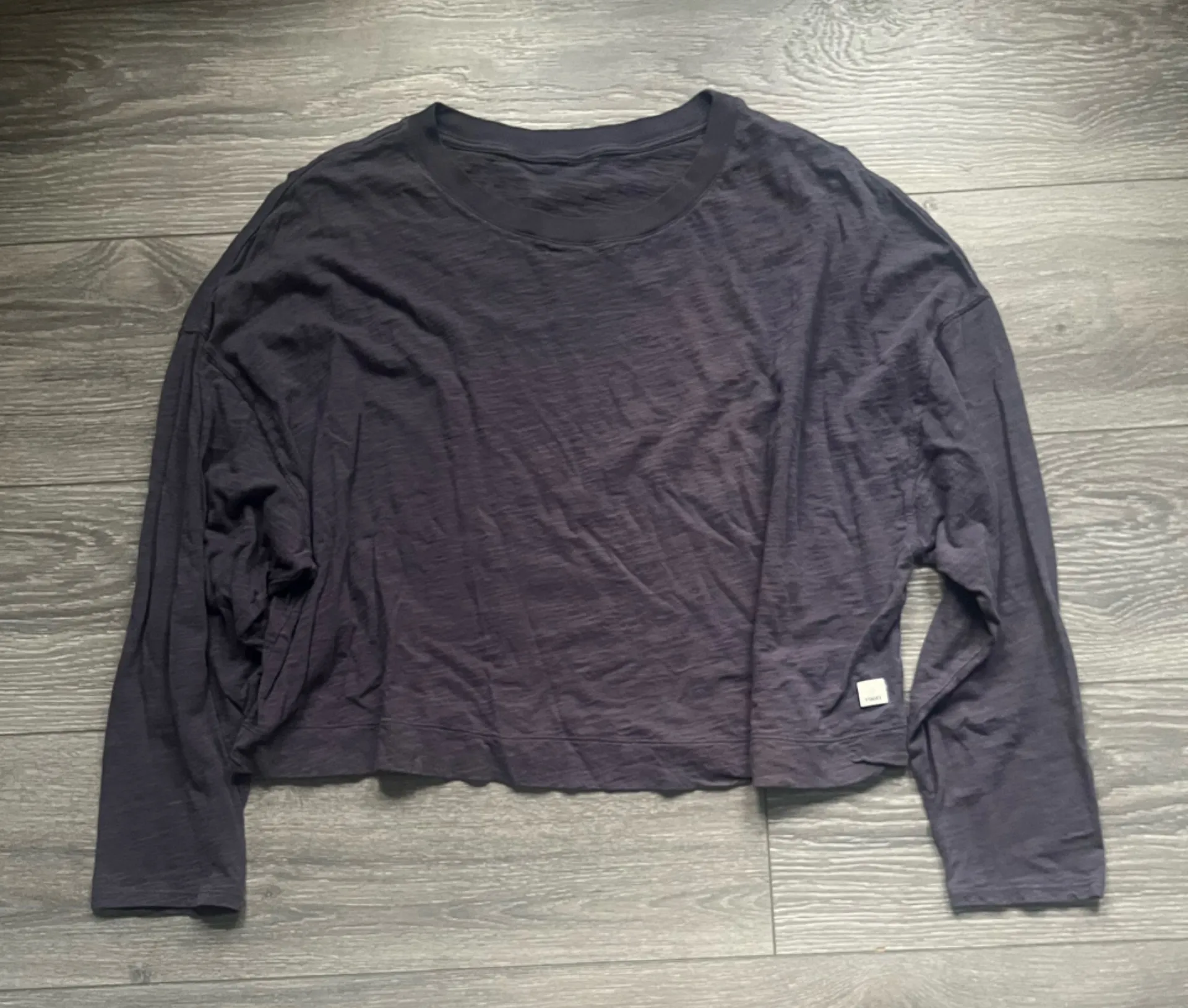 Vuori gray top. Long sleeves. Cropped. Crew neck. Relaxed fit. Previously owned. Approximate measu... Show more