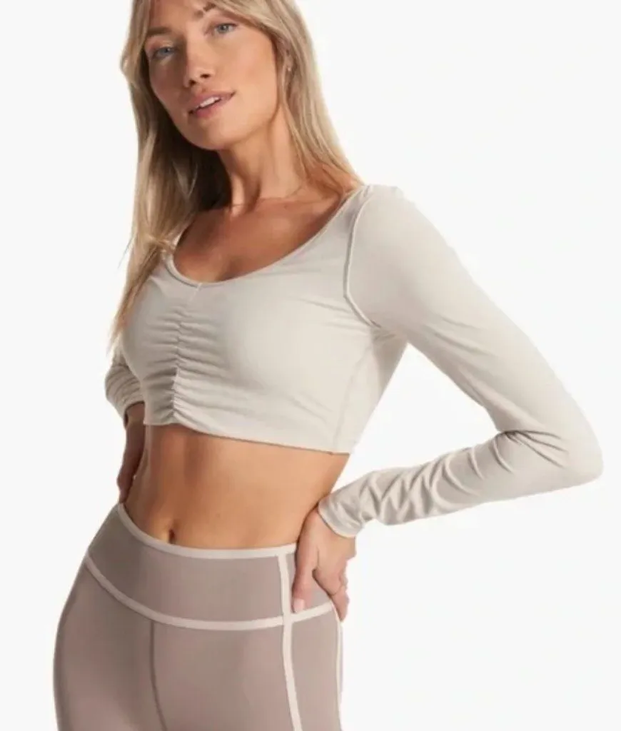 Gently used condition No inside tag, but size XS Approx measurements: Pit to pit: 13" Length 13" Arm: 23" (shoulder hem to sleeve hem) Gray/Beige Pullover Built in bra padding Fast shipping Smoke and pet free home
