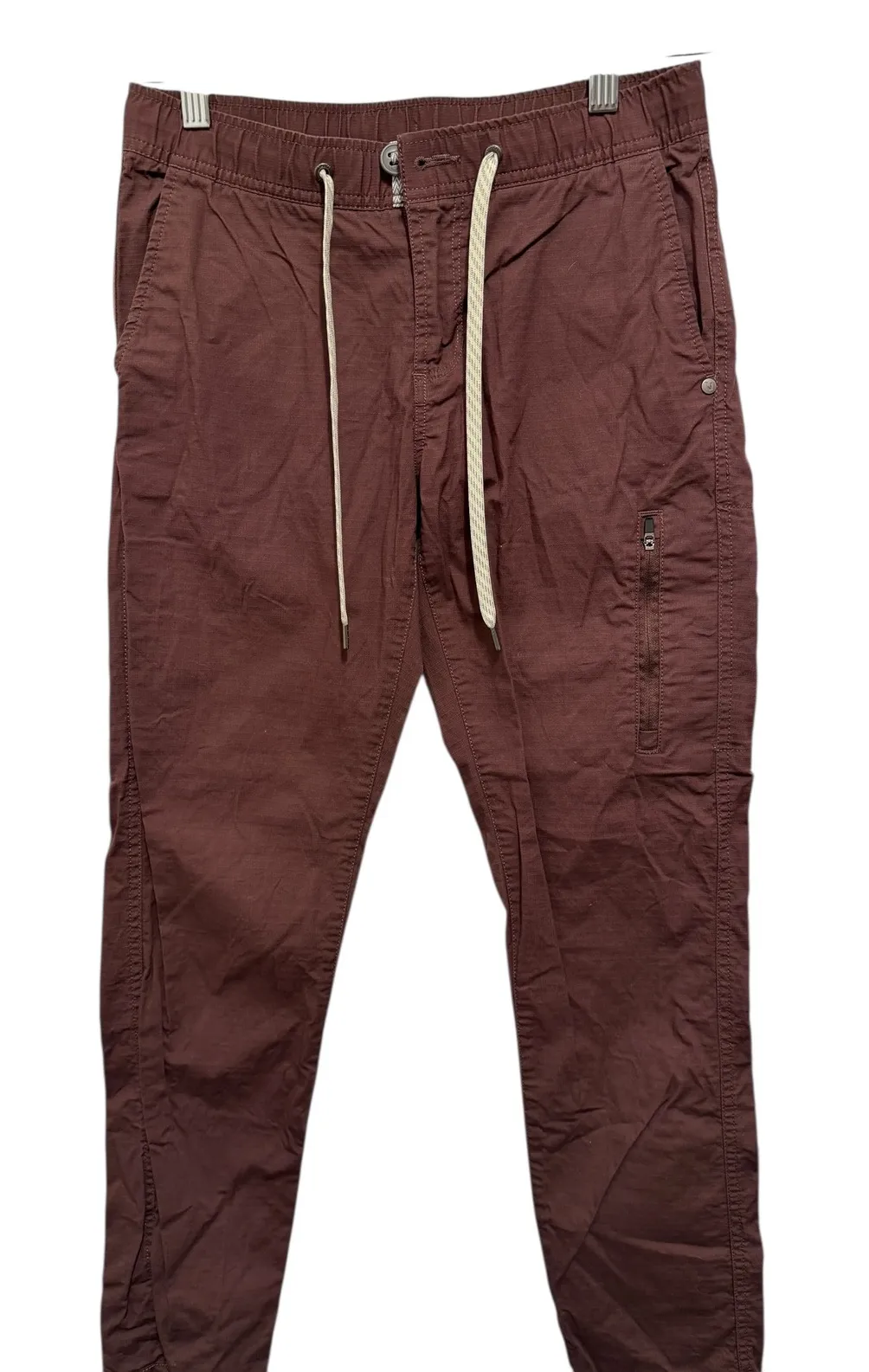 Discover ultimate comfort and versatile style with these Vuori performance jogger pants. Crafted from a premium organic cotton blend with a touch of elastane, these pants move with you, offering a flattering silhouette and exceptional comfort throughout your day. The rich brown hue and functional cargo pockets add a touch of modern utility, perfect for your active lifestyle. Ideal for casual outings, travel, or relaxing at home. Measurements: • Waist: 14.5 in • Rise: 12 in • Inseam: 28 in Department: Unisex Adults Style: Jogger Type: Pants Performance/Activity: Gym & Training, Running & Jogging, Walking Leg Style: Tapered Features: Adjustable Waist, Elastic Waist, Zip Pocket, Pockets Occasion: Activewear, Casual Material: Cotton Blend, Elastane Inseam: 28 in Closure: Drawstring Fabric Type: Twill Keywords: Vuori pants, women's joggers, organic cotton, stretch pants, cargo pockets, casual pants, travel pants, activewear, athleisure, comfortable pants, everyday wear, modern utility