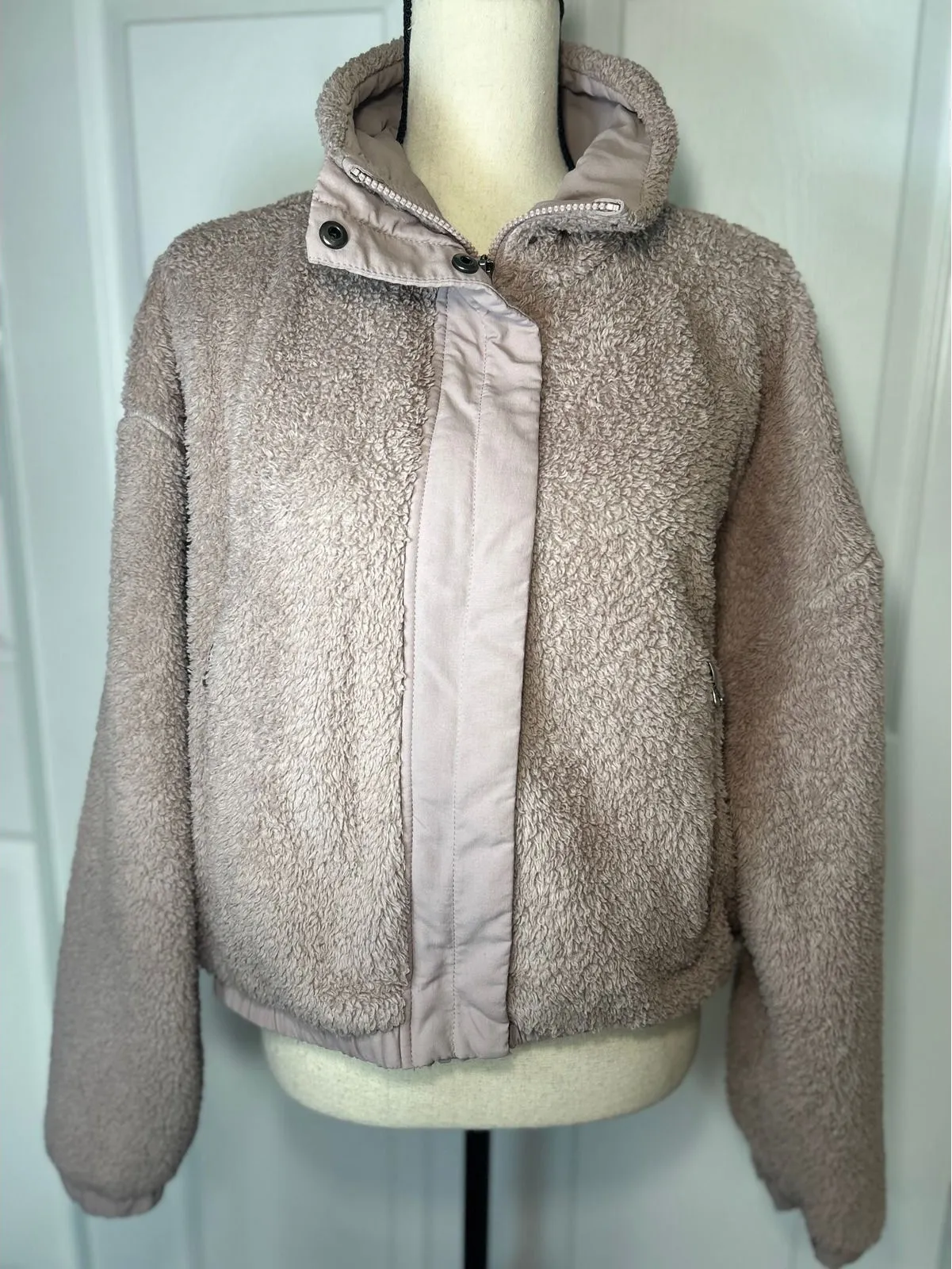 Vuori Jacket Size Large In great pre-owned condition, without flaws. Approx 23" long, 26" across chest A cozy fuzzy fleece jacket in a versatile pinkish hue. This jacket features a comfortable mock neck, full zip closure, and convenient zip pockets for your essentials. Style: Basic Jacket Closure: Zip Features: Pockets, Full Zip, Zipped Pockets, Contrasting Trim Performance/Activity: Gym & Training, Hiking, Casual Fit: Relaxed Fabric Type: Terry Insulation Material: Polyester Occasion: Casual, Activewear Keywords: fleece jacket, sherpa jacket, cozy, warm, loungewear, casual, layering, winter fashion, fall fashion, athleisure, trendy, comfy, Vuori, Vuori Sherpa Jacket, Vuori VW530, Cozy Sherpa, Pink Sherpa Jacket, Full Zip Sherpa, Cropped Sherpa Jacket, Size Large, Women's Outerwear, Athletic-leisure, Vuori Fleece Jacket.
