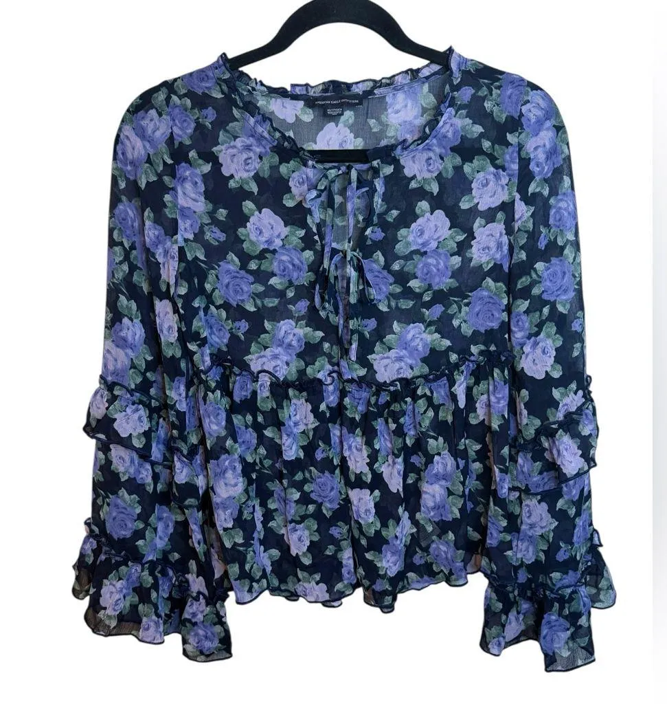 Pre owned excellent condition worn once or twice. Gorgeous blue and purple floral patterned sheer be... Show more