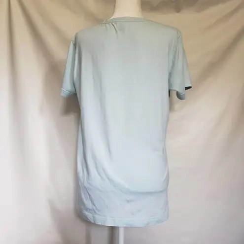 Pale blue green Victoria's Secret Pink Lace up Neck Short Sleeve top with dogo log Side slits, hi-lo... Show more