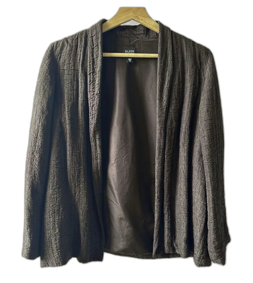 Eileen Fisher Brown Open-Front Silk/Linen Gauze Cardigan Blazer Size XS For those who love effortle... Show more