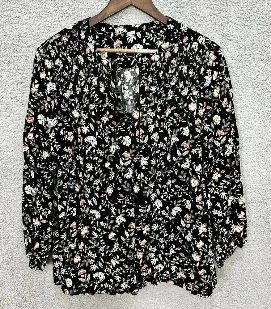 Old Navy ditsy floral top womens large black oversized tassel cottagecore boho used condition with... Show more