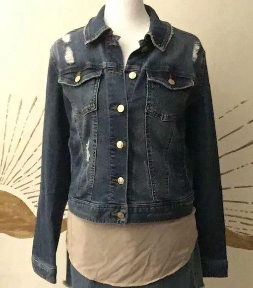 Excellent preloved condition - Celebrity Pink Stretch Denim Distressed Jacket This stretch denim je... Show more