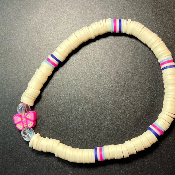 Pink Butterfly Yellow Heishi Disc Beaded Stretch Bracelet Unisex New - $9 New With Tags - From Shari